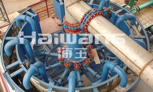 主要用于石灰石,電石渣等脫硫吸收劑的分級。經(jīng)球磨機磨碎后的石灰石料漿泵入旋流器內(nèi),在旋流器內(nèi)通過離心力作用完成粗細(xì)顆粒的分級。粗顆粒通過旋流器底流返回磨機再磨,吸顆粒通過溢流送入石灰石漿液罐。成品漿液重量濃度約為30%,細(xì)度為-325目(或-250目)≥90%。